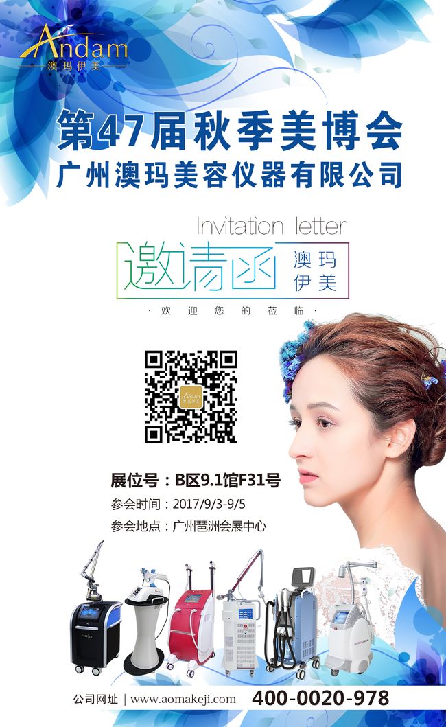 广州澳玛美容仪器有限公司诚挚邀请您莅临美博会B区9.1馆F31号展位,我们恭候您大驾光临!