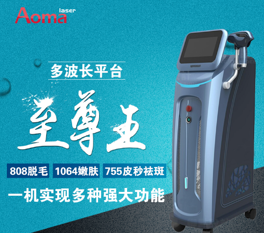 一机实现多种强大功能,集808脱毛、1064嫩肤、755皮秒祛斑于一体的超强工作平台!